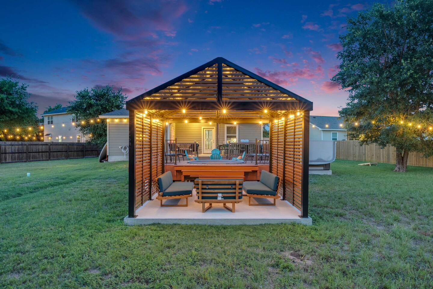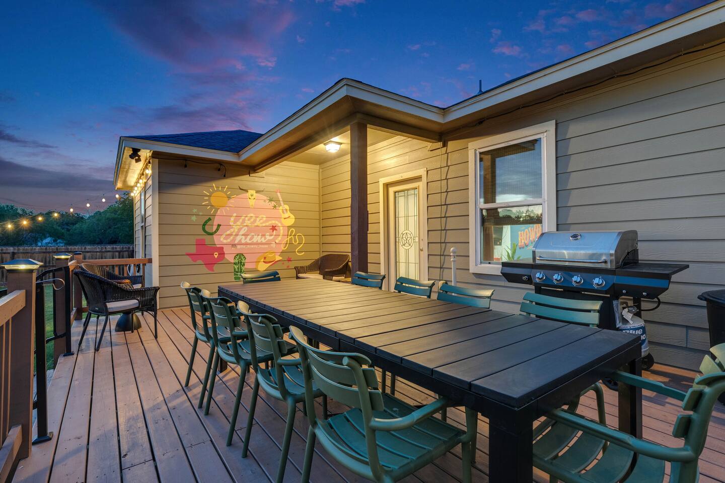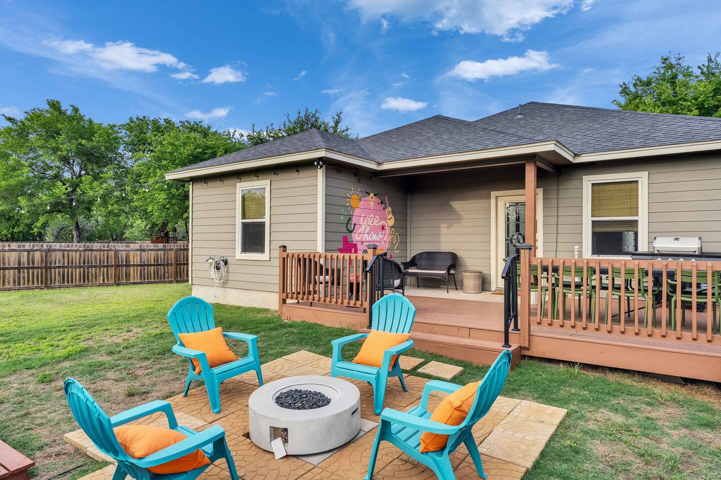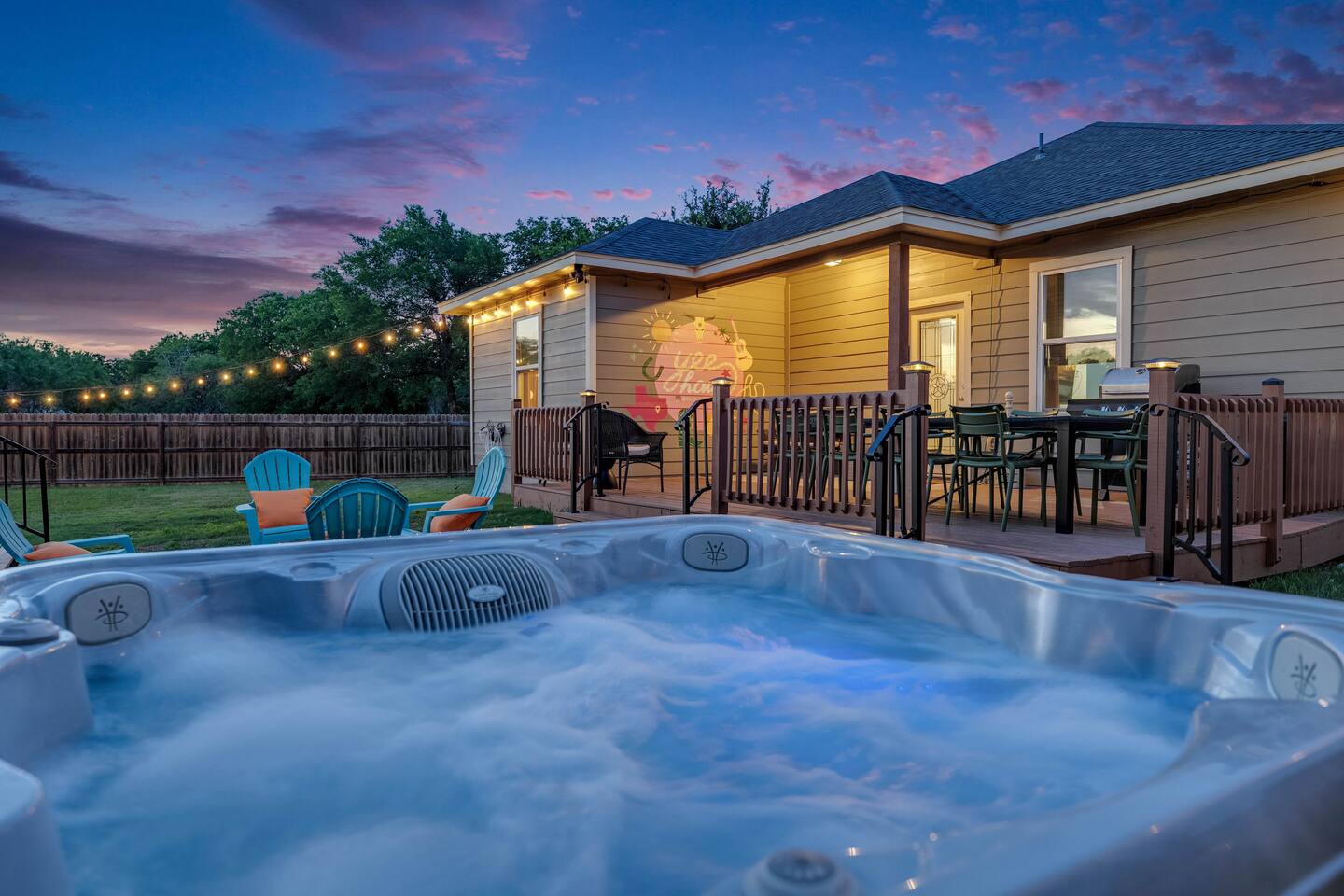 Welcome to The Howdy House! π€ With a spa, yard games and a game room, this home is a perfect for families, friends, or remote work. Enjoy a fully stocked kitchen with a KitchenAid, Instant Pot, comfy beds for 12, and fast WiFi with a desk & dual monitors. Relax on the backyard deck with seating for 10, cowboy pool, firepit, and gazebo. Explore the Colorado River & golf nearby. Smart TVs in every bedroom, ample parking, and just 30 mn to Austin Airport. Book now for the perfect Texas getaway!