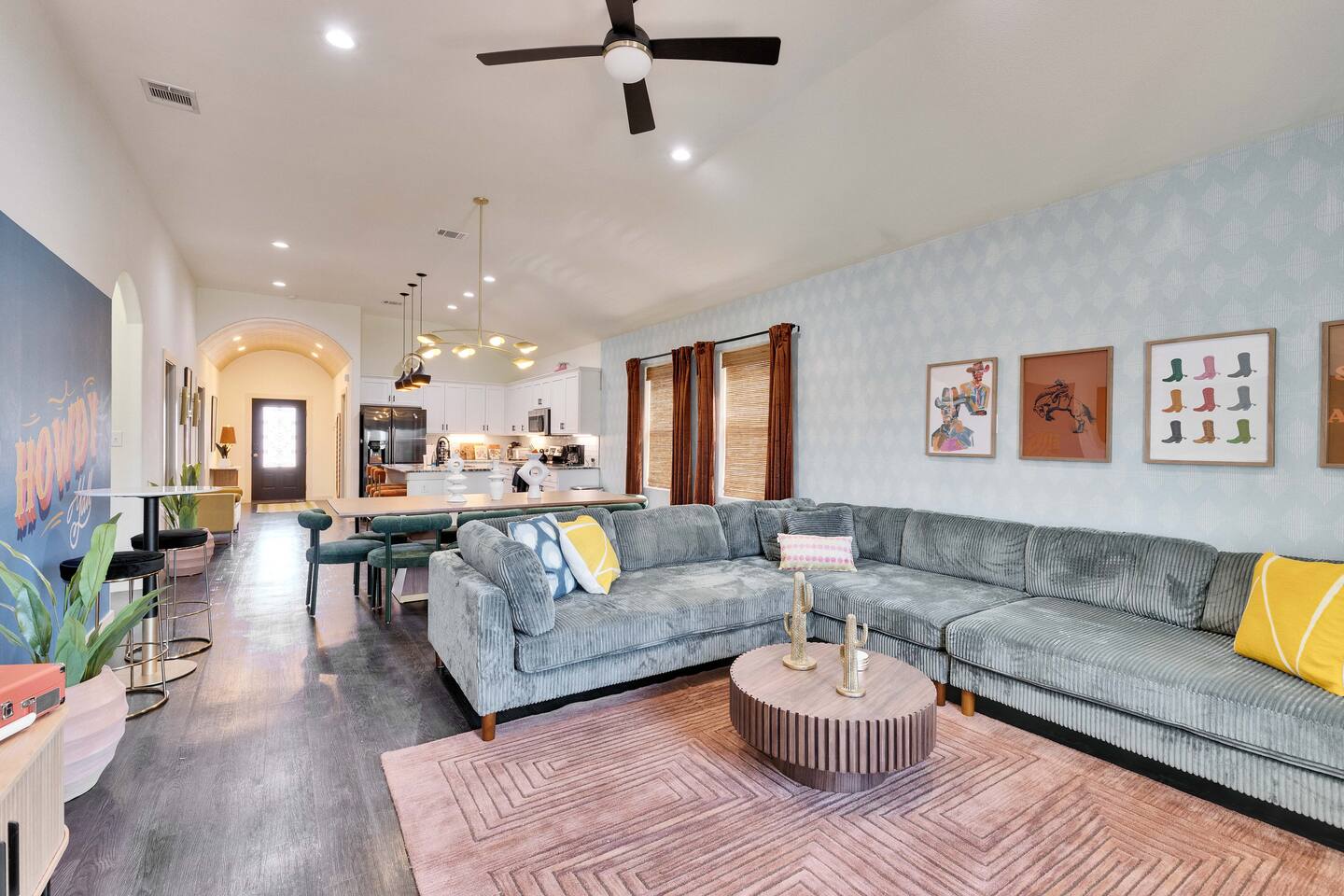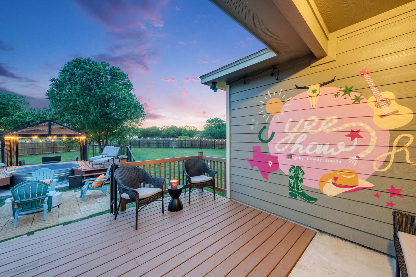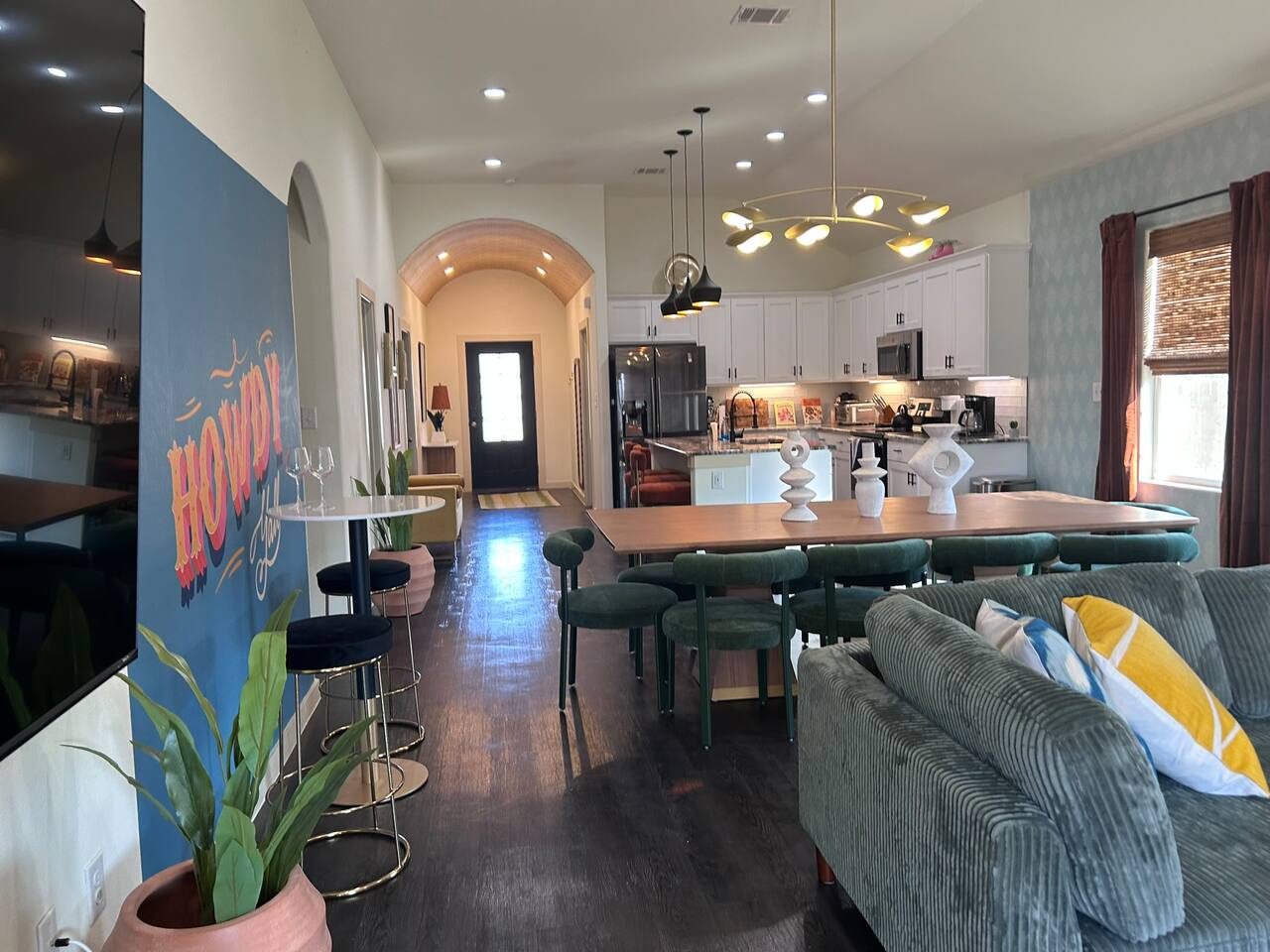 This home is in a quiet neighborhood we we ask you to be respectful to the neighbors. Please drive up and down the street slowly We require a photo in your profile to book. NO PARTIES OR EVENTS WHATSOEVER. We have security cameras on site (outside front of house) and can see if people outside your group come into the house. This will result in the immediate cancelation of your reservation with no refund. Do not tamper with or cover cameras. We run on septic, so please only flush toilet paper and NOTHING else down the toilet. If the septic clogs during your stay, a fee will be assessed to have a plumber come to make repairs. Please message us with the number of guests you are bringing, a little about you and your guests, and the purpose of your visit. If you use the dryer, please clean out the lint trap. We value your feedback, so feel free to message us with any reasonable requests, and we'll gladly accommodate them. Please make sure you have your photo in your profile to book, and you book with the correct number of people. Enjoy your stay! Check out by 11AM. Self check-in with keypad. Do not tamper with, unplug, or disconnect the internet, smoke detectors, or any other safety/ security items. If there is ever an issue, please contact us immediately. Please note that the spa and cowboy pool are serviced regularly to keep them both sparkling clean. If you use the spa or cowboy pool, please shower before using (especially if you have on any lotion or sunscreen) and please put the cover back on when you're done and secure the straps. Enjoy your stay at the Howdy House!! This is our home as well and due to severe allergies we do not allow animals. Thank you for your understanding.