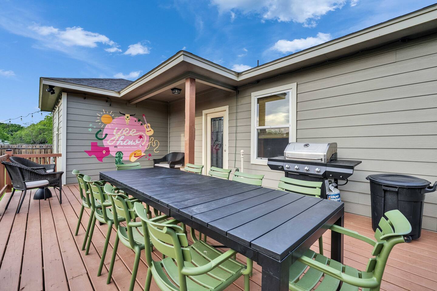 The Howdy House β Spacious 4BR 2 BA Retreat in a quiet neighborhood - Near Colorado River & Golf, 35 minutes to Austin Airport Welcome to The Howdy House! This beautifully designed 4-bedroom, 2-bath home in Bastrop, TX, is perfect for families, friends, and remote workers looking for a comfortable getaway. β¨ Home Highlights: Open-Concept Living β Relax on the spacious, comfy sofa and enjoy the large smart TV (BYOL β Bring Your Own Login). Fully Stocked Kitchen β Equipped with seasonings, cooking oils, pots, pans, instapot/ crockpot/ rice maker combo, utensils, and a KitchenAid mixer for baking. Coffee Loverβs Dream β Choose from ground or whole beans with a grinder, French press, mini Keurig, and coffee pot. π‘ Bedrooms & Sleeping Arrangements: The Howdy Room (Primary Suite) β King bed, ensuite bath with double sinks, walk-in closet, smart tv desk with dual monitors, pack βn play, 2 yoga mats, yoga blocks, jump rope and dumbbells. The Welcome Room β Two double beds, smart tv and closet with hangers The Bunk Room β Four twin bunk beds, perfect for kids or groups, smart tv, closet with hangers The Eastwood Room β Queen bed, smart tv, closet with hangers * Indoor game room features a pool table, ping pong table, basketball, air hockey, poker, foosball, giant jenga, giant connect 4 and board games including chess, checkers, backgammon and others. Take a photo in front of the mural and tag us! * Outdoor games include cornhole, yardzee and water toys. πΏ Outdoor Space: Backyard Oasis β Large deck, lounge seating, and a dining table for 10 guests. BBQ and firepit. * Spa and cowboy pool (not heated) *Mural for your photos Front Yard Seating β Cozy spot for two. Ample Parking in driveway π Great Location: Quiet neighborhood 4 miles to shopping & dining Near the Colorado River β Great for walking or kayaking 4 miles to Fisherman's Park where you can play pickleball, tennis, play with the kids in the playground or kayak. (we have paddles, rackets and balls you can borrow) Close to a golf course 35-minute drive to Austin Airport (traffic-dependent) Fast WiFi β Perfect for remote work Whether you're here for a weekend escape, work retreat, or family gathering, The Howdy House is your home away from home! Book now and start planning your Texas adventure! π€ β¨